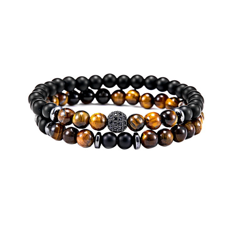 Elevate your everyday look with this sophisticated natural stone bracelet featuring micro ball inlay details. The perfect balance of rugged natural stone and refined European design.